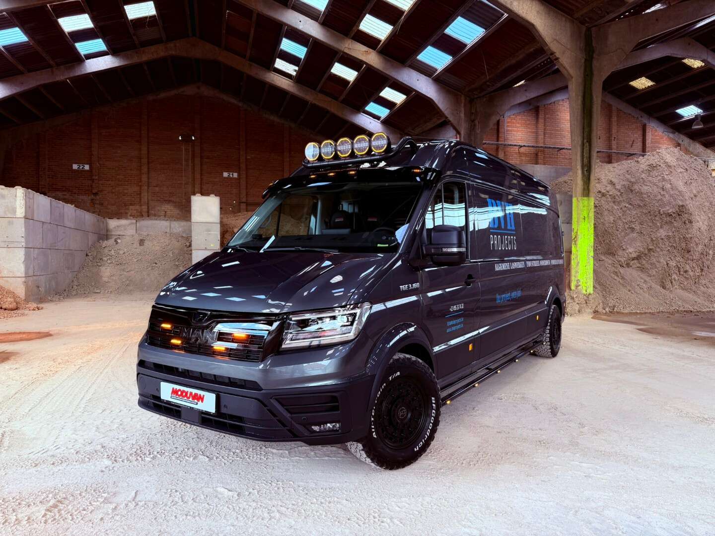 Voor BVH Projects transformeerde Moduvan een nieuwe MAN TGE om tot een complete mobiele werkplek die zowel praktisch als opvallend is.