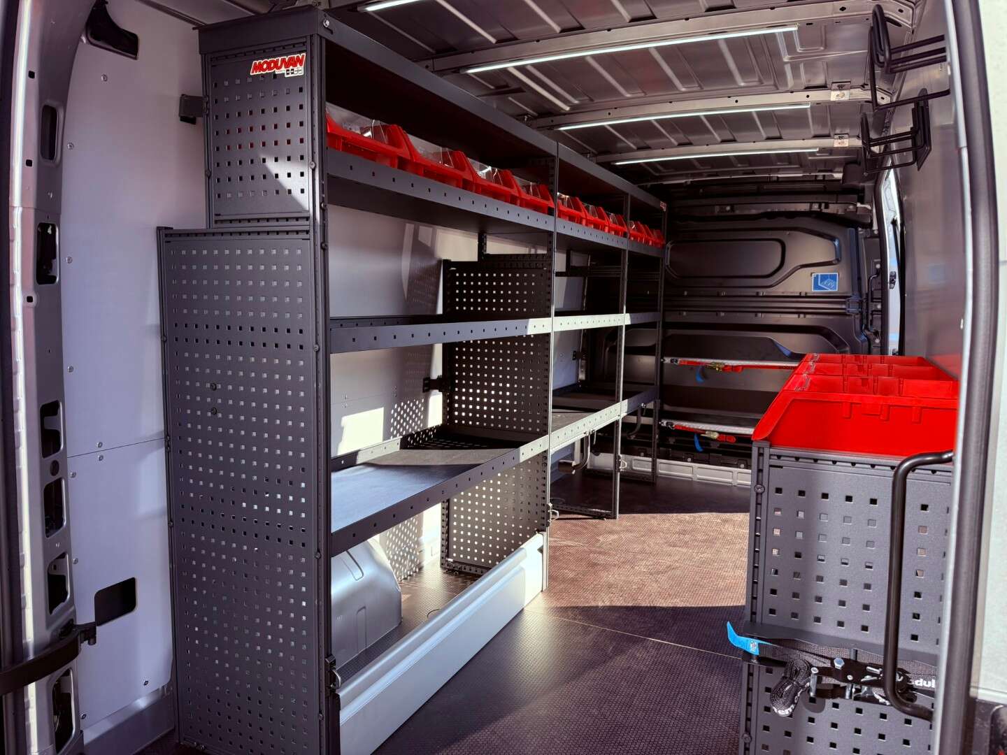 We voorzagen elk voertuig van een op maat gemaakte Modul System binneninrichting, een duurzame houten vloer en zijwanden voor extra bescherming, en krachtige binnen-LED-verlichting zodat er altijd in optimale omstandigheden gewerkt kan worden.๐ก