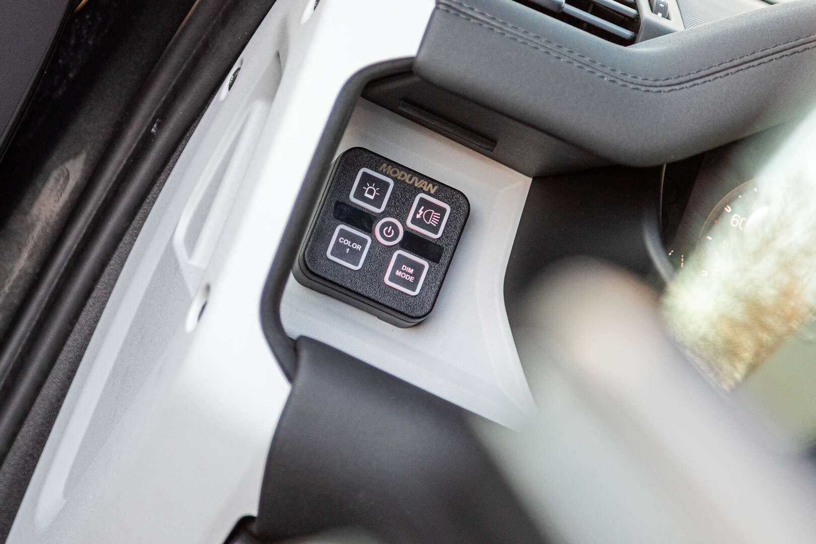 De bediening van de extra verlichting gebeurt door middel van een paneel dat strak weggewerkt werd in het dashboard.