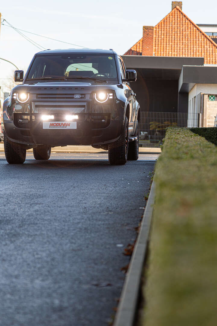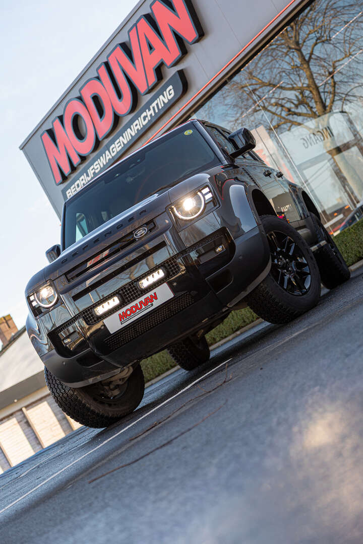 Deze stoere Land Rover Defender werd door Moduvan onder handen genomen en voorzien van een Lazer grillkit en heldere achteruitrijverlichting, knap ingewerkt in de bumper van het voertuig.