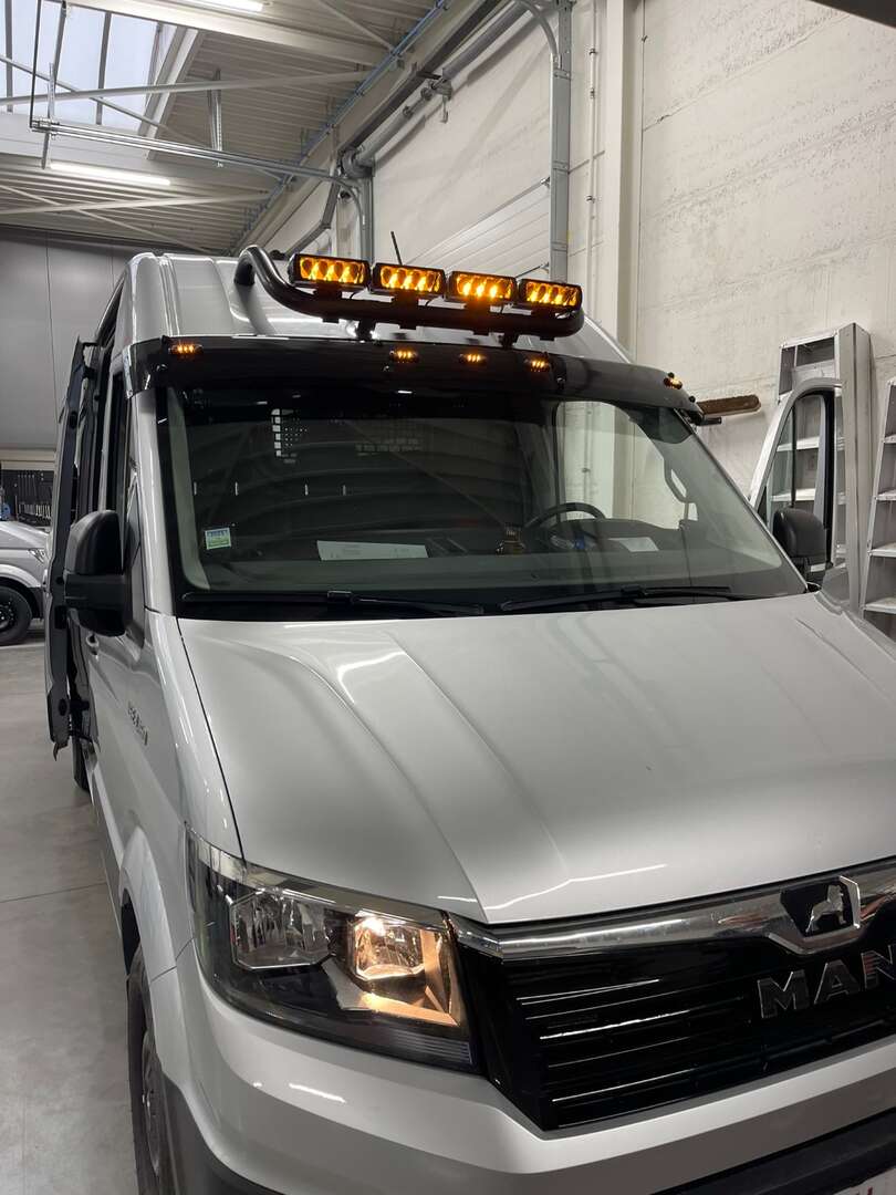 We mochten de nieuwe MAN TGE bestelwagen van Kenny Vandekeere voorzien van de nodige upgrades. Wat deze wagen echt in het oog doet springen, is de strakke zwarte roofbar, uitgerust met krachtige Lazer High Performance Lighting verlichting. 💡 💡
